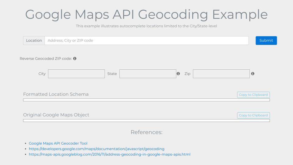The Imgur API is a RESTful API based on HTTP requests and JSON responses. This version of the API, version 3, uses OAuth 2.0. This means that all requests will need to be encrypted and sent via HTTPS. It also means that you need to register your application, even if you aren't allowing users to login. Learning Google Maps Geocoding by example. The Geocoding Service is an integrated process in the Google Maps JavaScript API v3 that allows you to convert an address in their respective geographic coordinates. The geocoder is included in the Google Maps JavaScript API v3 and so you don't need to define any additional parameter in the API call URL. map. setMapTypeId ( "moon" ); } // Normalizes the coords that tiles repeat across the x axis (horizontally) // like the standard Google map tiles. function getNormalizedCoord ( coord, zoom) {. const y = coord. y; let x = coord. x; // tile range in one direction range is dependent on zoom level. // 0 = 1 tile, 1 = 2 tiles, 2 = 4 tiles, 3 = 8 ...