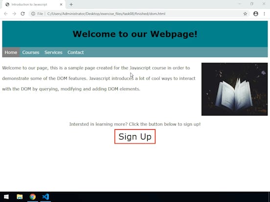 We have gathered a variety of JavaScript exercises (with answers) for each JavaScript Chapter. Try to solve an exercise by editing some code, or show the answer to see what you've done wrong. Count Your Score. You will get 1 point for each correct answer. Your score and total score will always be displayed. Try the first 77 lessons, challenges, projects (first 7 chapters) & flashcards for free. You can upgrade to a Pro account with a one-time payment that gives you access for 5 years. Learn Javascript is suitable for beginner developers who have basic experience in any programming language. Learn about the DOM (document object model) and the power the is available at your fingertips. Learn about Functions and how to use them for quicker and easier code development. Create interactive buttons for web users. Source code is included step by step guide for beginners or anyone who wants to learn more about JavaScript.