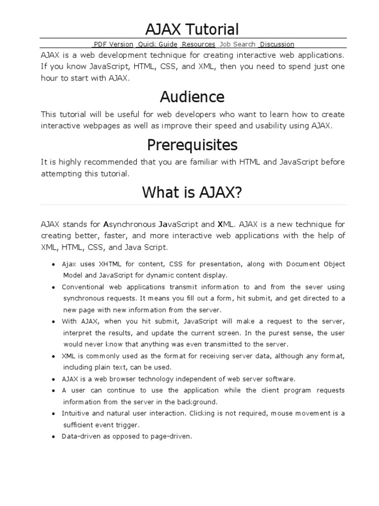 Ajax Tutorial Ajax Tutorial Pdf Ajax Tutorial For Beginners