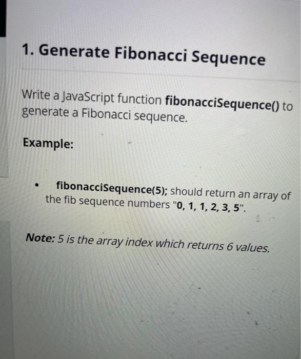 1 Generate Fibonacci Sequence Write A Javascript Chegg Com