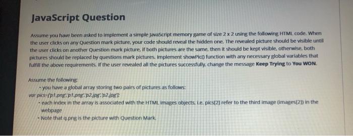 Javascript Question Assume You Have Been Asked To Chegg Com