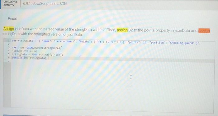 Aciwienge 69 1 Javascript And Json Activity Reset Chegg Com