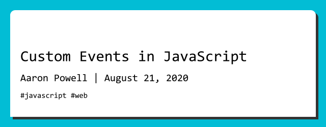 How to create a custom event in JavaScript. Custom events can be created in two ways: Using the Event constructor. Using the CustomEvent constructor. Custom events can also be created using document.createEvent, but most of the methods exposed by the object returned from the function have been deprecated. Alternatively, the event object which is passed into the callback function can be used to access the image element to add or remove the class. img.addEventListener("click", function(e) { e.target ...