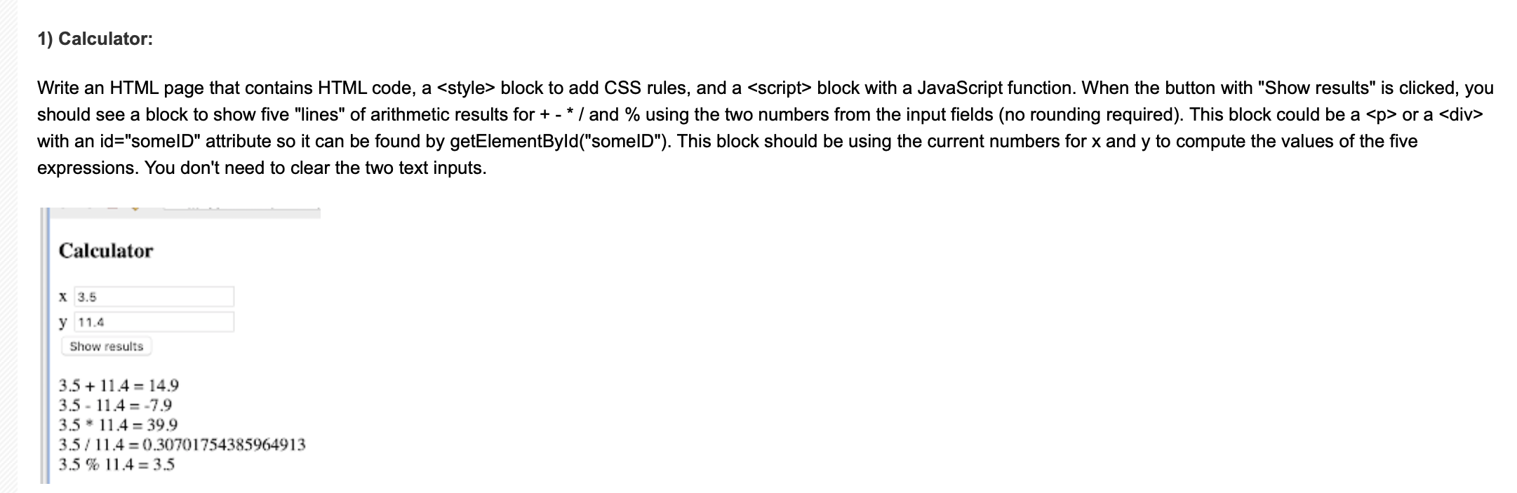 Solved 1 Calculator Write An Html Page That Contains Ht