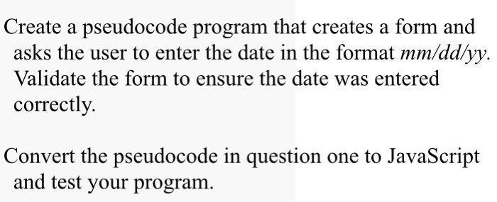 Create A Pseudocode Program That Creates A Form And Chegg Com