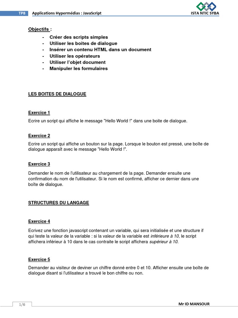 Serie Exercice Javascript Idmansour Pdf Document