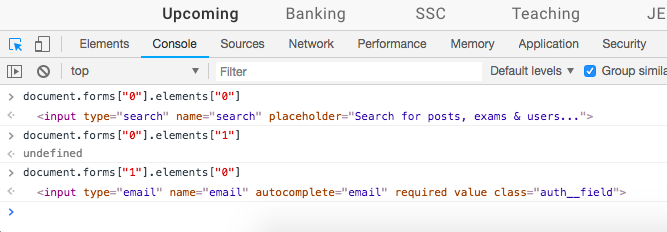 Document getelementsbyname value in javascript undefined. Another method is document.getElementsByName ('name') [wholeNumber].value which returns a live NodeList which is a collection of nodes. It includes any HTM/XML element, and text content of a element: Use the powerful document.querySelector ('selector').value which uses a CSS selector to select the element: JavaScript getElementsByName vs getElementById() JavaScript get Elements By Name vs getElementById(): JavaScript provide two different functions for locating DOM elements by name. The function, which is called in the code snippet above, returns all nodes with the given name attribute. var x = document.getElementsByName("*Option"); JavaScript in HTML: Getting undefined input value? Refresh. December 2018. Views. 9.3k time. 1. For some reason, when I enter a value in the following script, the value of ISBN is always undefined. I'm not sure why this is the case. I have set the button to run the function onclick as well...