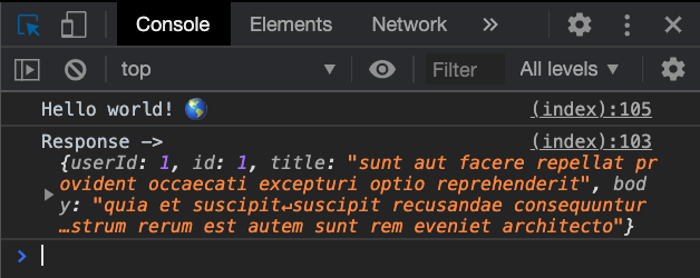 Awaiting or just returning asynchronous values in JavaScript async/await functions. When you're writing asynchronous code in JavaScript using async/await functions, ... if you await the call to checkIfItemsAreAvailable you just add a bit of extra time waiting for it to resolve before you return it. Nov 18, 2019 - I have a async function in controller which should await on another service function returning value, but it's not waiting on it. If only one (or the best) way to resolve this problem is to return new Promise despite just value? Controller code · exports.trip = async (req, res, next) => { Jul 16, 2019 - Why don't you simply do: let Connection ... the (async function () { and avoid the setImmediate? setImmediate is not doing any magic there. – robe007 Jul 16 '19 at 17:04 ... Not the answer you're looking for? Browse other questions tagged javascript typescript promise es6-promise or ask your own question. ... Why does my JavaScript code receive ...