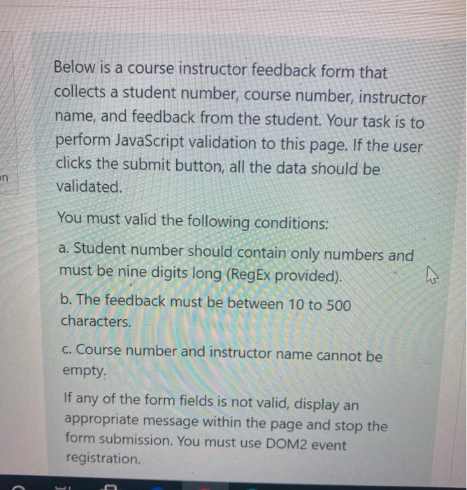 Below Is A Course Instructor Feedback Form That Chegg Com