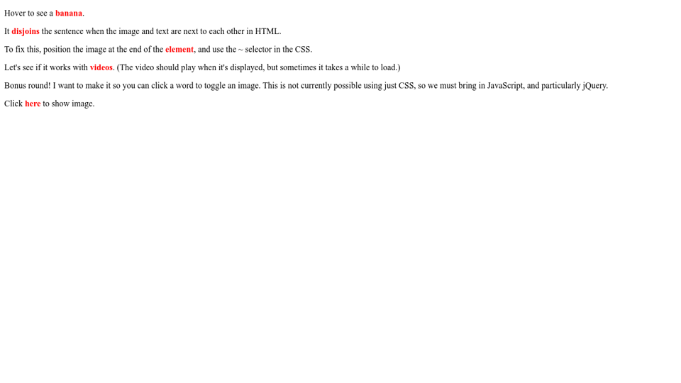 Well organized and easy to understand Web building tutorials with lots of examples of how to use HTML, CSS, JavaScript, SQL, Python, PHP, Bootstrap, Java, XML and more. displays or show the desired text using javascript? <a title="This is the title text displayed on hover.">Displayed. Text</a>. The above HTML will display the title text when the mouse is hovered. over the displayed text but it disappears quickly. There may be a better way to display text on hover using javascript but. May 22, 2015 - Recently I learned HTML+CSS and a bit of jQuery and am building various web-things to stretch my skills and learn more about how to do things the right way. I was a bit surprised at just how many