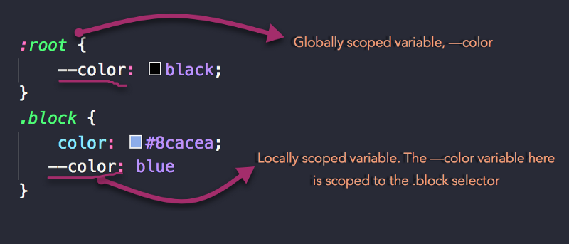 We recently came across Lea Verou's slider polyfill which expresses an interesting use of CSS Variables to communicate between JavaScript and CSS. Historically, if you wanted to control CSS with a variable or function in JavaScript, your only option was to essentially write the CSS in JavaScript: myElement. style. height = height + 'px' Sass variables and JavaScript Sass is a pre-processing language, meaning it's turned into CSS before it ever is a part of a website. For that reason, accessing them from JavaScript in the same way as CSS custom properties — which are accessible in the DOM as computed styles — is not possible. Feb 27, 2020 - The second project will be a ... by JavaScript. ... Also referred to as custom properties or cascading variables, CSS variables have myraid use cases. One of the most common is managing websites in which numerous values are similar to those in the document. This helps to reduce the friction associated with refactoring ...
