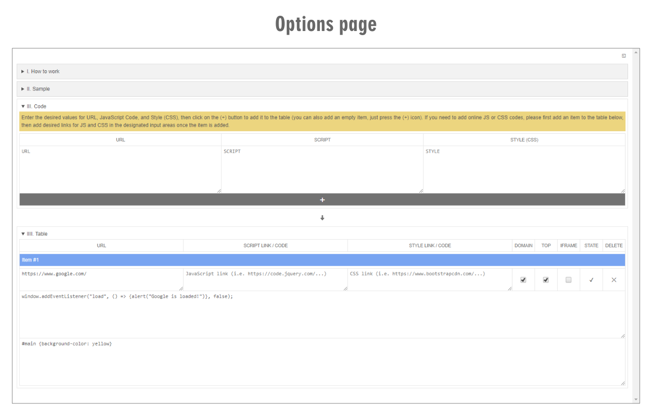 Getting the Stylesheet Which stylesheet you add the rules to is up to you. If you have a specific stylesheet in mind, you can add an ID to the LINK or STYLE element within your page HTML and get the CSSStyleSheet object by referencing the element's sheet property. The stylesheets can be found in the document.styleSheets object: 3/3/2020 · The simple way is to just create a new <style> element, add your CSS properties using innerHTML, and append it to the DOM: // create style element const style = document . createElement ( 'style' ) ; // add CSS styles style . innerHTML = ` .btn { color: white; background-color: black; width: 150px; height: 40px; } ` ; // append the style to the DOM in <head> section document . head . appendChild ( style ) ; Therefore, to add specific styles to an element without altering other style values, it is generally preferable to set individual properties on the CSSStyleDeclarationobject. For example, element.style.backgroundColor = "red". A style declaration is reset by setting it to nullor an empty string, e.g., elt.style.color = null.