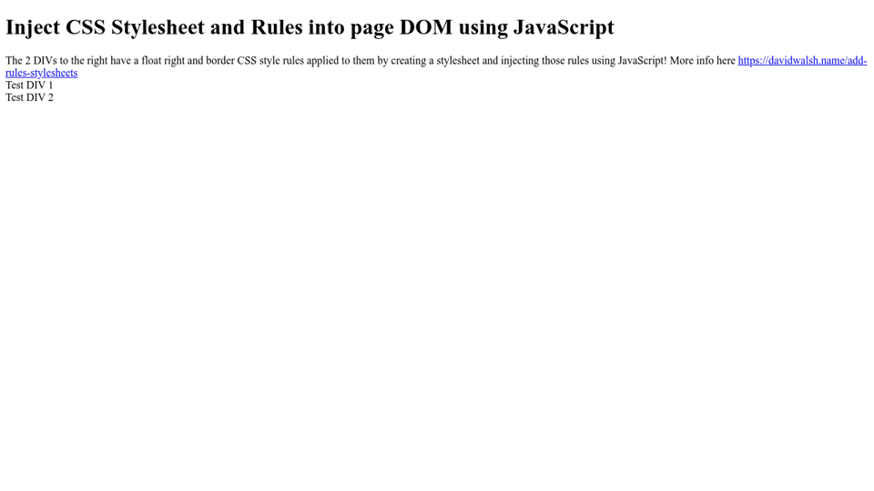 As far as being able to inject HTML into the page via CSS, it's not directly possible, however it's possible to add JavaScript into the page using CSS, which can then add HTML to the page. I can't emphasize enough how wrongthat approach would be. The easiest and straightforward way to change CSS styles of an element with JavaScript is by using the DOM style property. All you need to do is just fetch the element from DOM and change its inline styles: inject css and js via javascript. GitHub Gist: instantly share code, notes, and snippets.