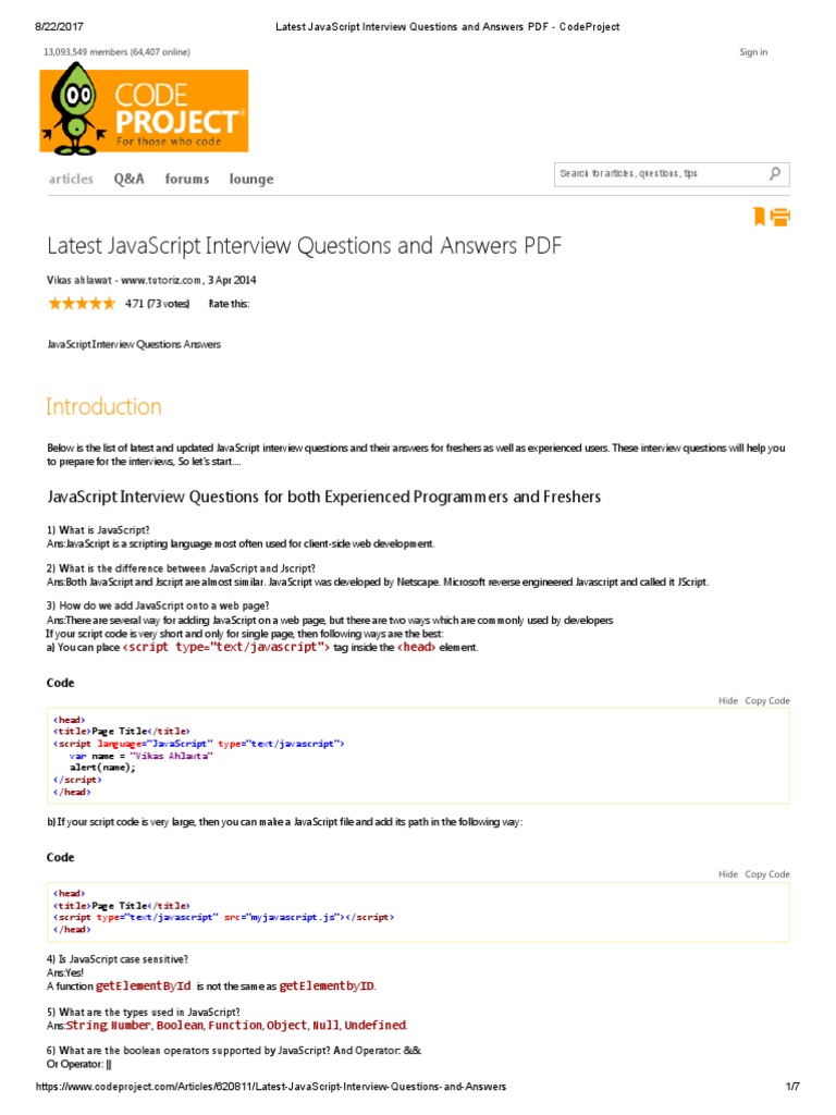 Latest Javascript Interview Questions And Answers Pdf