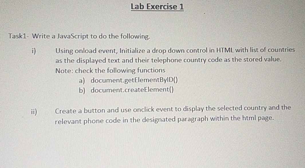 Lab Exercise 1 Task1 Write A Javascript To Do The Chegg Com