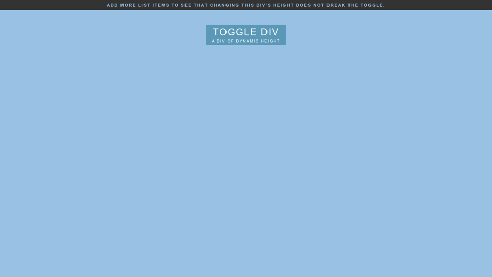 The number of rows in the table change so I needed to shrink the div around the table. You can actually make the DIV tag act as a server side control and change it's styles dynamically! Here's How: In your aspx markup, make the DIV tag run on the server and assign it an id. Content's Height = Window's Height - ( Header's height + Footer's height ) Solution: We don't need to bang our head calculating the stuffs, rather lets css handle these stuffs as below: Thats all, we gets the desired layout. Similarly, we can manage the height also. Requirement #2: A list of menu with its image on left side and a ... If the user wants to change the content height of a div dynamically, it includes changing the actual height, actual height with padding, and actual height with padding and border, then the user can use any of the following methods that will dynamically set the height of the content of an element. Using height () method Using innerHeight () method
