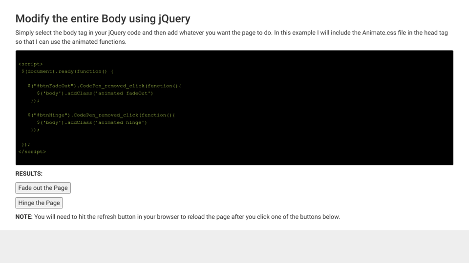 Jquery Addclass To Body Animate Css