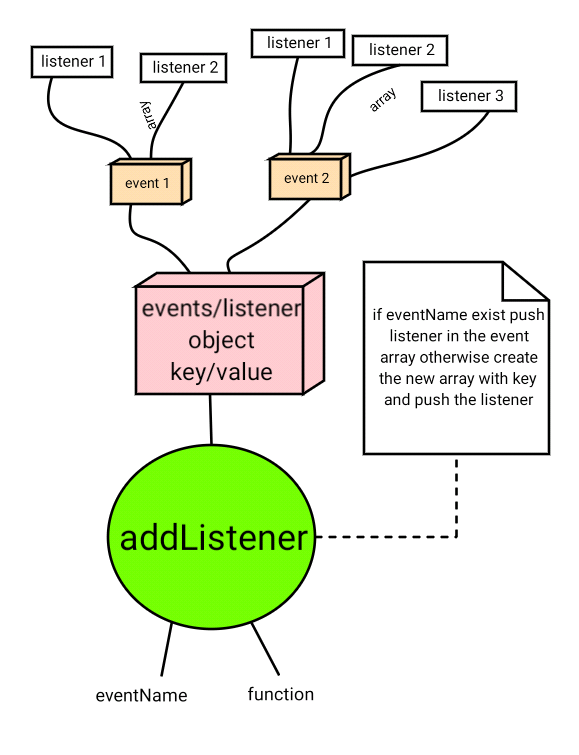 1 week ago - The object that receives a notification (an object that implements the Event interface) when an event of the specified type occurs. This must be an object implementing the EventListener interface, or a JavaScript function. See The event listener callback for details on the callback itself. The format for adding events using this method is as follows: document.addEventListener('click', myfunction, false); In the above format, you start by adding the method to the Document object. In the parentheses, list the event listener but without the on. (In this example, the event listener is onclick, which is shortened to click .) The two main methods of subscribing to events in JavaScript are through event listeners and events handlers. Let's have a quick overview of these two methods: Event Listeners Vs. Event Handlers. event listeners: event listeners can be attached to objects and listen to their events. It's as simple as that.