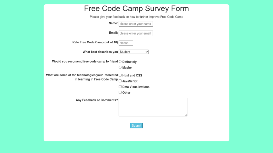 Html Code For Student Feedback Form