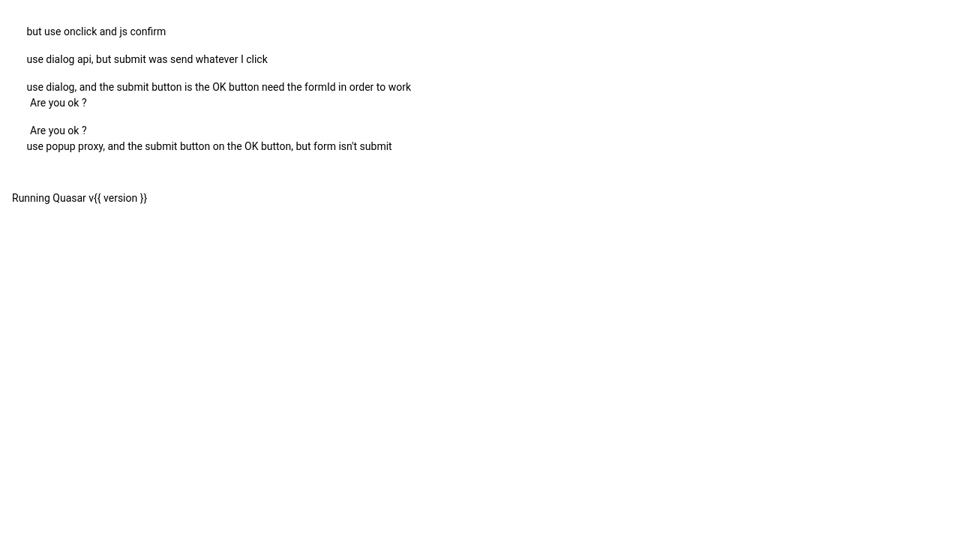Add confirmation dialog to React events. A short example of render prop component which adds a confirmation step to any React event, like form submit or button click. You've done it zillion times — you have a form which has an action that requires an extra confirmation step. Maybe to encourage user to double check entered data or just ... I want to show a confirmation message before perform any task like submit, update or delete the data. To implement this functionality you have to set onclick action of button or actionlink. I think I would replace the submit button with an ordinary button and use JavaScript to add the confirmation message. If the response is yes then the script can submit the form. Or, possibly better . . . add an extra page to the form where you show the data to be deleted and ask for confirmation there.