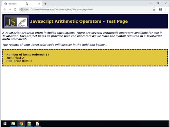 Javascript arithmetic operators program. JavaScript Arithmetic Operators JavaScript arithmetic operators are used to perform arithmetic operations. There are various types of operation available in arithmetic operators. 2 weeks ago - In this article we have covered the fundamental information you need to know about numbers in JavaScript, for now. You'll see numbers used again and again, all the way through your JavaScript learning, so it's a good idea to get this out of the way now. If you are one of those people that doesn't ... In this intermediate-level project you will write JavaScript code to use arithmetic operators in calculations. Many programming applications require calculations to determine tax amounts, coordinates, and square footage, among others.