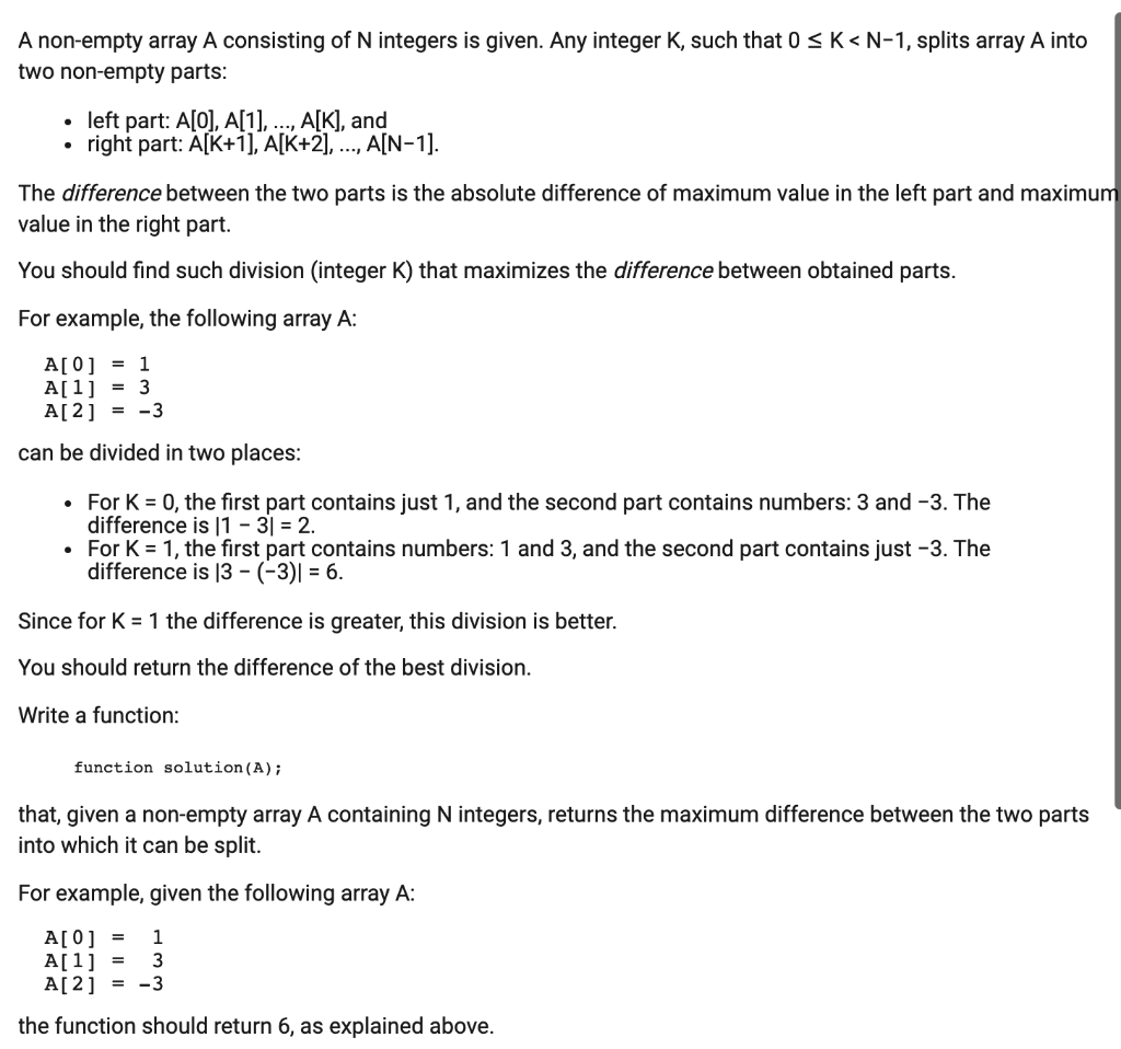 A Non Empty Array A Consisting Of N Integers Is Chegg Com