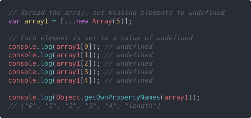 Notice how each item in the new object uses the array index of the value as the key (i.e. "0", "1", etc.). And you can now access each item in the new object using the conventional dot notation method (foo.bar).In the next section, we'll show you how to manually loop over an array to construct a new object. A set can be converted to an array in JavaScript by the following way-. By using Array.from () method: This method returns a new Array from an array like object or iterable objects like Map, Set, etc. Syntax There is no need to use the JavaScript's built-in array constructor new Array (). Feb 27, 2021 - When you remove the duplicate numbers from an array with new Set() method, it turns into a set instea... Tagged with javascript, tradecoder.