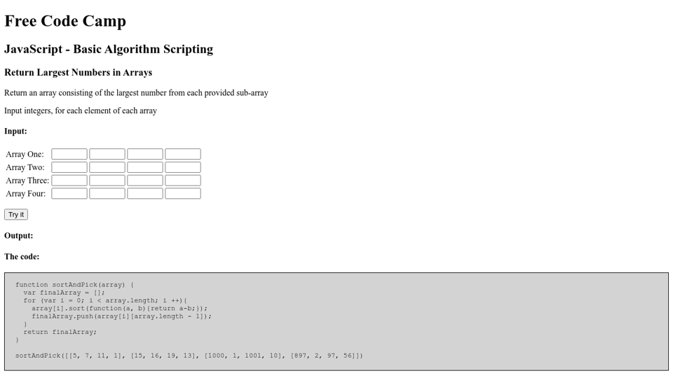 Return Largest Numbers In Arrays
