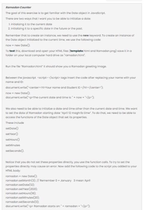 Ramadan Counter The Goal Of This Exercise Is To Get Chegg Com