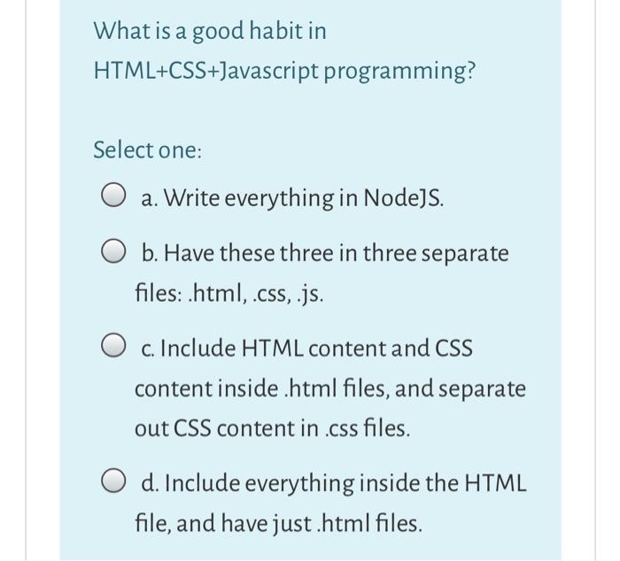 What Is A Good Habit In Html Css Javascript Chegg Com