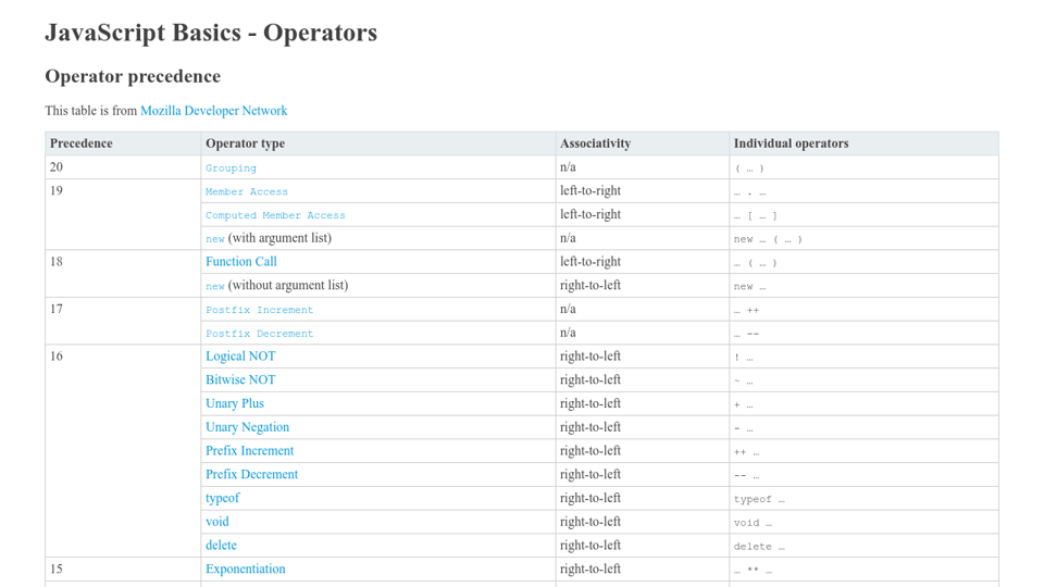 Javascript Operator Lookup A Full List Of Javascript Operators