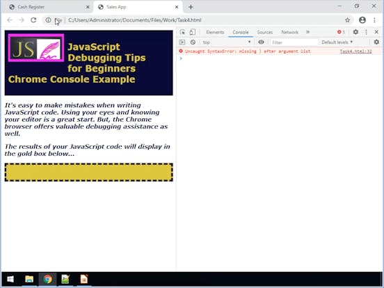Feb 15, 2020 - You arrived as an absolute beginner. You leave with seven new programming concepts under your belt, and a bunch of extracurricular knowledge thrown in for good measure. But don’t stop there, start writing some JavaScript code right away. After all, the best way to commit things to memory ... JavaScript statements are commands to the browser JavaScript code is a sequence of statements JavaScript statements are separated with semicolon Multiple statement on one line is allowed JavaScript statements can be grouped together in code blocks You can break a code line after an operator or a comma. In the real world, you are more likely to use the tooling provided by the framework to run your code, as opposed to the basic methods shown in this couse. Run JavaScript in a Sandbox This course uses StackBlitz to run JS code examples in an isolated sandbox in the browser.