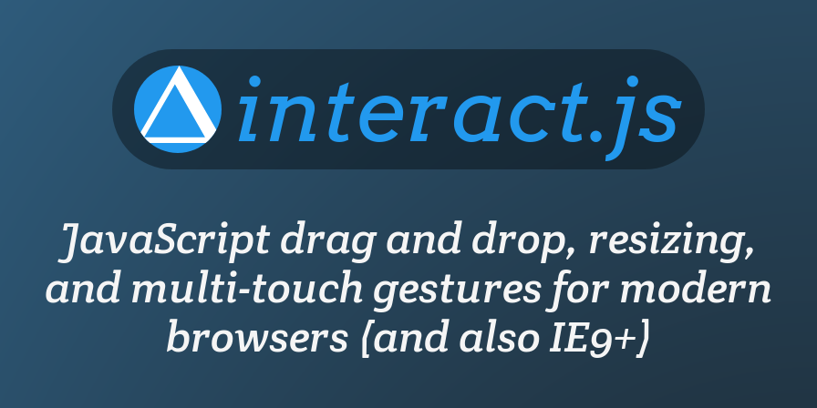 Multiple simultaneous interactions. Unified API for touch and mouse events. Auto scroll. Support for HTML and SVG. <script type="module"> import interact from 'https://cdn.jsdelivr /npm/@interactjs/interactjs/index.js' interact ('.item').draggable ( { listeners: { move (event) { console.log (event.pageX, event.pageY) } } }) </script>. ZingTouch is a modern JavaScript touch gesture library. ZingTouch allows developers to configure pre-existing gestures and even create their own using ZingTouch's life cycle, this library has 6 main gestures : tap, swipe, pinch, expand, pan and rotate. It supports major JavaScript frameworks like Angular 1, Angular2, jQuery, React, VueJs, and Web Components.ule. This library includes more than 25+ features like paging, sorting, filtering, validation, Ajax data, files data, REStful, touch support, Angular JS directive, and much more. FancyGrid is a plugin-free library and it has no dependency.