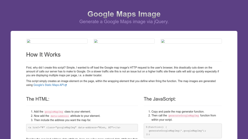 javascript map elements of an array to HTML DIV template. Ask Question Asked 7 years, 11 months ago. Active 2 years, 1 month ago. Viewed 6k times 1 What I'm looking for is either a function or a piece of code that could help me dump the results of an array into an HTML DIV. I know that there's different ways of doing so, but these all require ... Getting started. There are three steps to creating a Google map with a marker on your web page: Create an HTML page; Add a map with a marker; Get an API key The map () method creates a new array with the results of calling a provided function on every element in this array. As you can see, we have five different types of objects: An array. The elements contained within this array. A function. The results returned by this function. A new array.