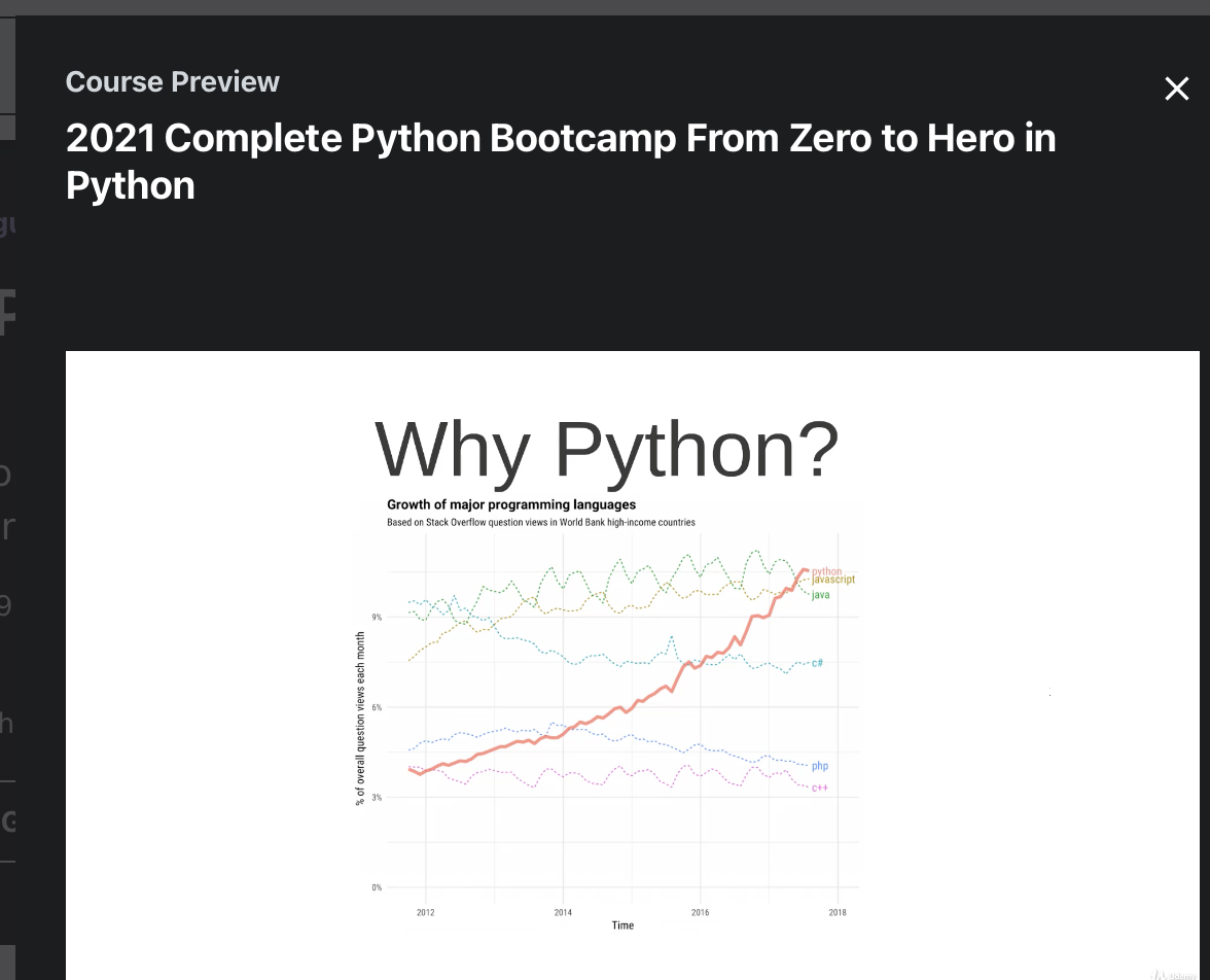 Accelerated JavaScript Training | Udemy. Preview this course. Current price $14.99. Original Price $89.99. Discount 83% off. 5 hours left at this price! Add to cart. Buy now. 30-Day Money-Back Guarantee. The Modern JavaScript Bootcamp starts from scratch and builds up your knowledge of the JavaScript language. Yes, you'll learn all the features of the language, but you'll also learn how to use those features together to create a complete application. This comprehensive course covers the modern ES6 and ES7 JavaScript features used in the ... Udemy - Python Bootcamp 2020 Build 15 working Applications and Games August 24, 2020 0 Python Bootcamp 2020 - Learn full python with basics, data science, data visualization, desktop graphical applications and python for web.