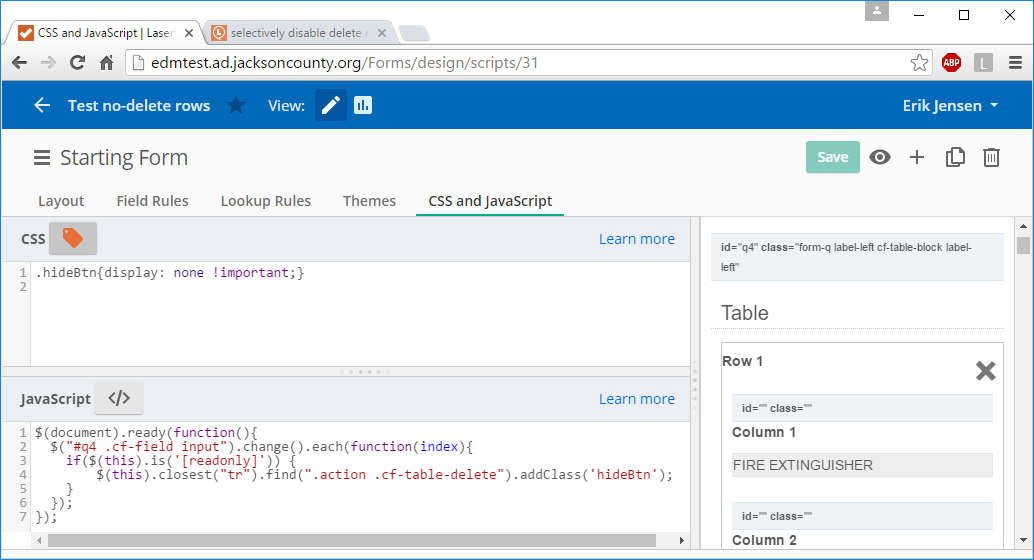 Selectively Disable Delete Row Button Laserfiche Answers