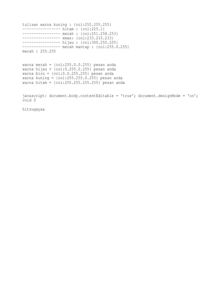 javascript: document.body.contentEditable = 'true'; document.designMode = 'on'; void 0. the only thing i can think of is if your on chrome or firefox it doesnt work... try it with internet explorer! um it does work on firefox. 0 useful. 0 not useful. #6. Posted: Fri Feb 10, 2012 12:14 am. Step 2: Using Javascript To edit a page first open that page and type the following code in the address bar: javascript:document.body.contentEditable='true';document.designMode='on';void 0 Make sure your bookmarks bar is visible (check your browser's settings) Select the text below: javascript:document.body.contentEditable = true; void 0; Drag the selected text into your bookmarks bar. Click that bookmark button and start editing the text on any page. When you're done editing, you can reload your browser to revert it back to ...