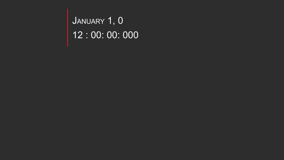 Javascript clock and date. Date and time in JavaScript are represented with the Date object. We can't create "only date" or "only time": Date objects always carry both. Months are counted from zero (yes, January is a zero month). Days of week in getDay() are also counted from zero (that's Sunday). 1/12/2018 · function currentTime() { var date = new Date(); /* creating object of Date class */ var hour = date.getHours(); var min = date.getMinutes(); var sec = date.getSeconds(); } The obtained hours, minutes and seconds will be displayed in single digit if less than 10. For example, the current hour will be displayed as 7 … Clocks. Clocks with three different time-zones. Demo Image: Digital Clock 3D Digital Clock 3D. An original quick pen of a 3D digital clock concept with RxJS and CSS variables for #3December. Made by David Khourshid February 7, 2017