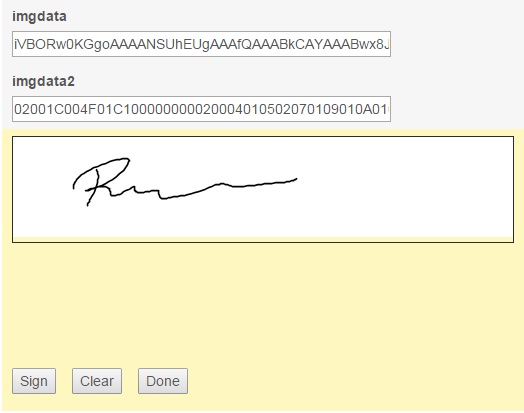 Signature Pad. Signature Pad is a JavaScript library for drawing smooth signatures. It's HTML5 canvas based and uses variable width Bézier curve interpolation based on Smoother Signatures post by Square . It works in all modern desktop and mobile browsers and doesn't depend on any external libraries. SigPlus JavaScript Demo How-To Guide The second part of code to examine is the Javascript commands. In this section, there are two functions that will grab the data passed through the GET method and redistribute the data for use on this page. This section also contains the code to load the signature into the signature The Signature Pad plugin comes from a clearly smart guy named Thomas J Bradley.Based on the work I've done with it so far, it's well written with good documentation. Even better: it just plain works. Signature Pad: A jQuery plugin for assisting in the creation of an HTML5 canvas based signature pad.