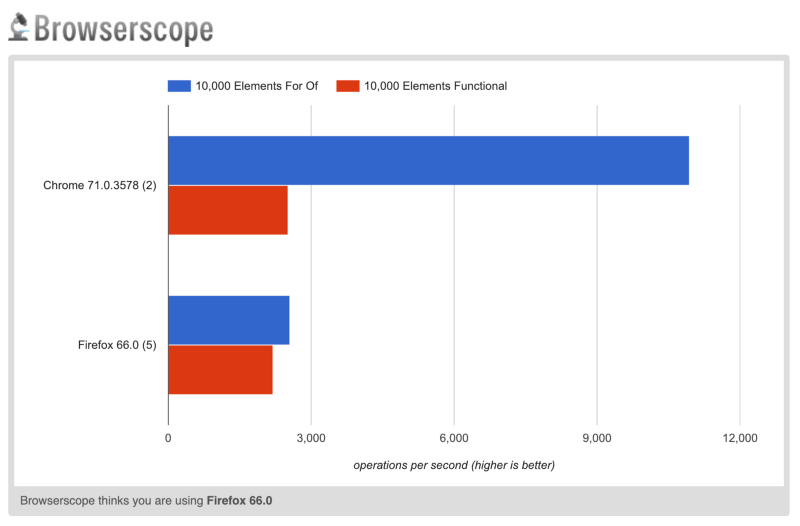 JavaScript microbenchmarks, JavaScript performance playground. Measure performance accross different browsers. Benchmark: lodash forEach vs for i loop - MeasureThat 16/11/2020 · Unfortunately, the for-loops or forEach do not use the event-loop, but they are rather synchronously run (for-loops) or put on the call stack (forEach). This also means that using either of these ways of looping through data will block any other task that needs to run on the main thread. As an example, we can consider the following code. JavaScript microbenchmarks, JavaScript performance playground. Measure performance accross different browsers. Benchmark: forEach vs reduce vs map vs filter vs for - MeasureThat