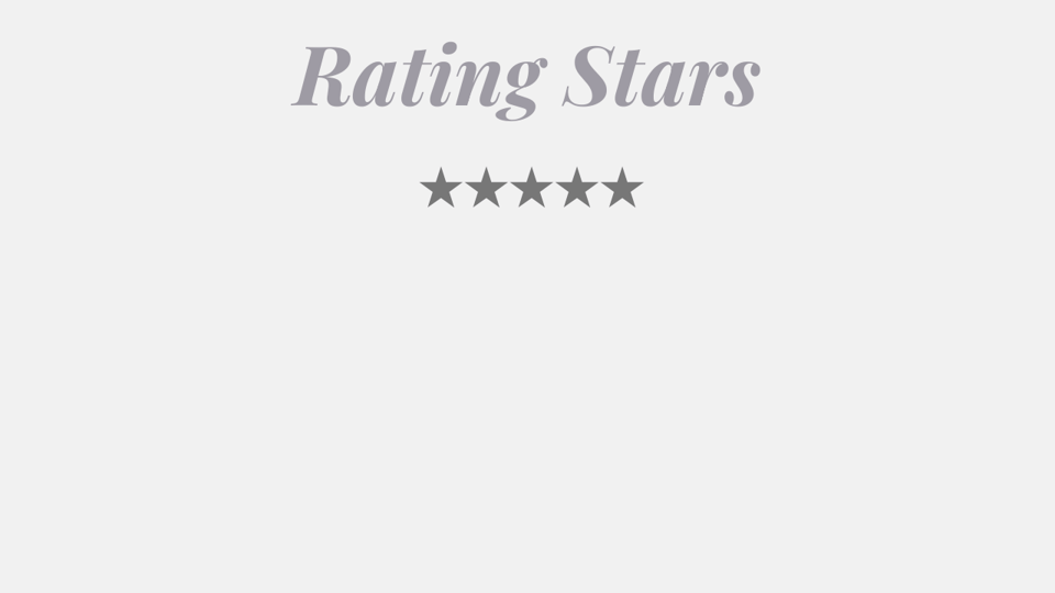 CodePen requires JavaScript to render the code and preview areas in this view. Trying viewing this Pen in Debug Mode, which is the preview area without any iframe and does not require JavaScript. Although what the preview is of might! Need to know how to enable JavaScript? Go here. You rated this " + ratingValue + " stars."; } responseMessage(msg); }); }); function responseMessage(msg) { $('.success-box').fadeIn(200); $('.success-box div.text-message').html("<span>" + msg + "</span>"); } ... CodePen requires JavaScript to render the code and preview areas in this view. *{ margin: 0; padding: 0; } .rate ...mukulkant/Star-rating-using-pure-css */ ... CodePen requires JavaScript to render the code and preview areas in this view. Trying viewing this Pen in Debug Mode, which is the preview area without any iframe and does not require JavaScript...