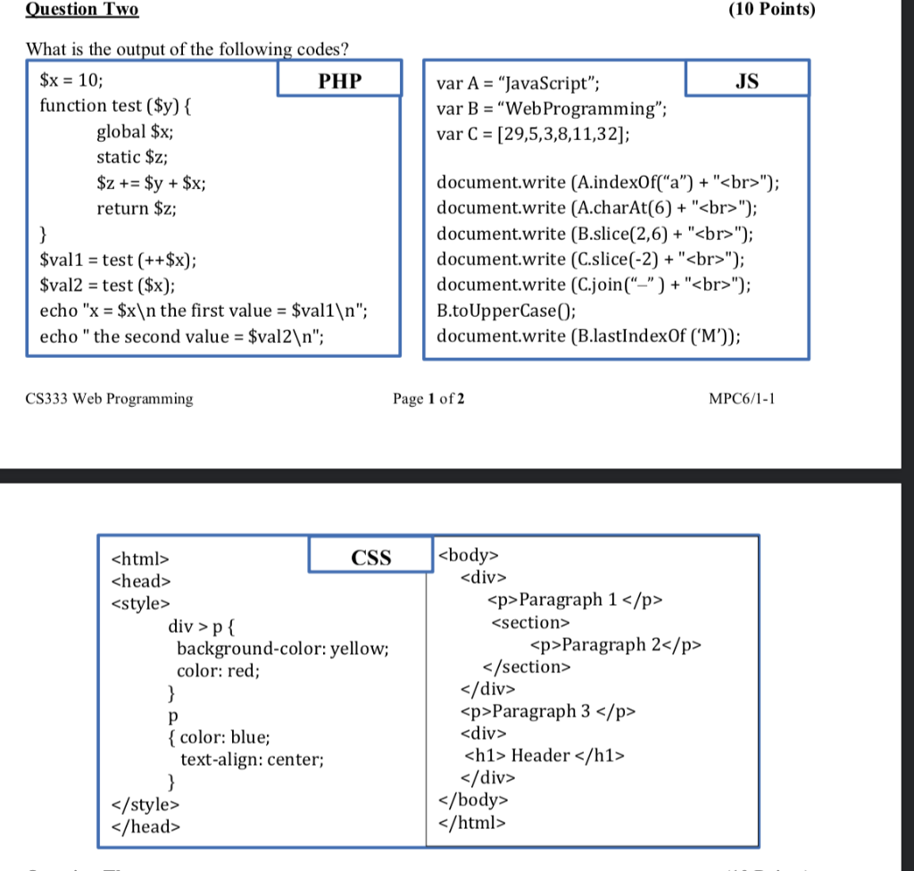 Question Two 10 Points Js Var A Javascript Var Chegg Com