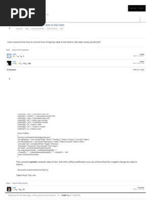 At the level of the year, a rough first order translation is: Gregorian = 622 + Hijri * 354/365.25 Then you can refine that further if you want to convert day-month-year, using 1st Muharram 1 A.H. = July 16, 622 to calibrate, as well as the fact that on average, one hijri month is 29.5 days and one hijri year is … The code is originally written in JavaScript. This manual provides information on how to use the code on a web-page or a JavaScript-based application to display prayer times. actionscript adobe-flash as3 prayer-times islam hijri latitude-and-longitude islamic islamic-prayer-times. Updated on Apr 1, 2017. ActionScript. Hijri to Gregorian converter is an online tool to convert the convert Hijri to Gregorian. Date conversion was not that easy before because of the complexity involved in the conversion. The Hijri to Gregorian calendar makes it very simple to convert Hijri calendar to Gregorian.