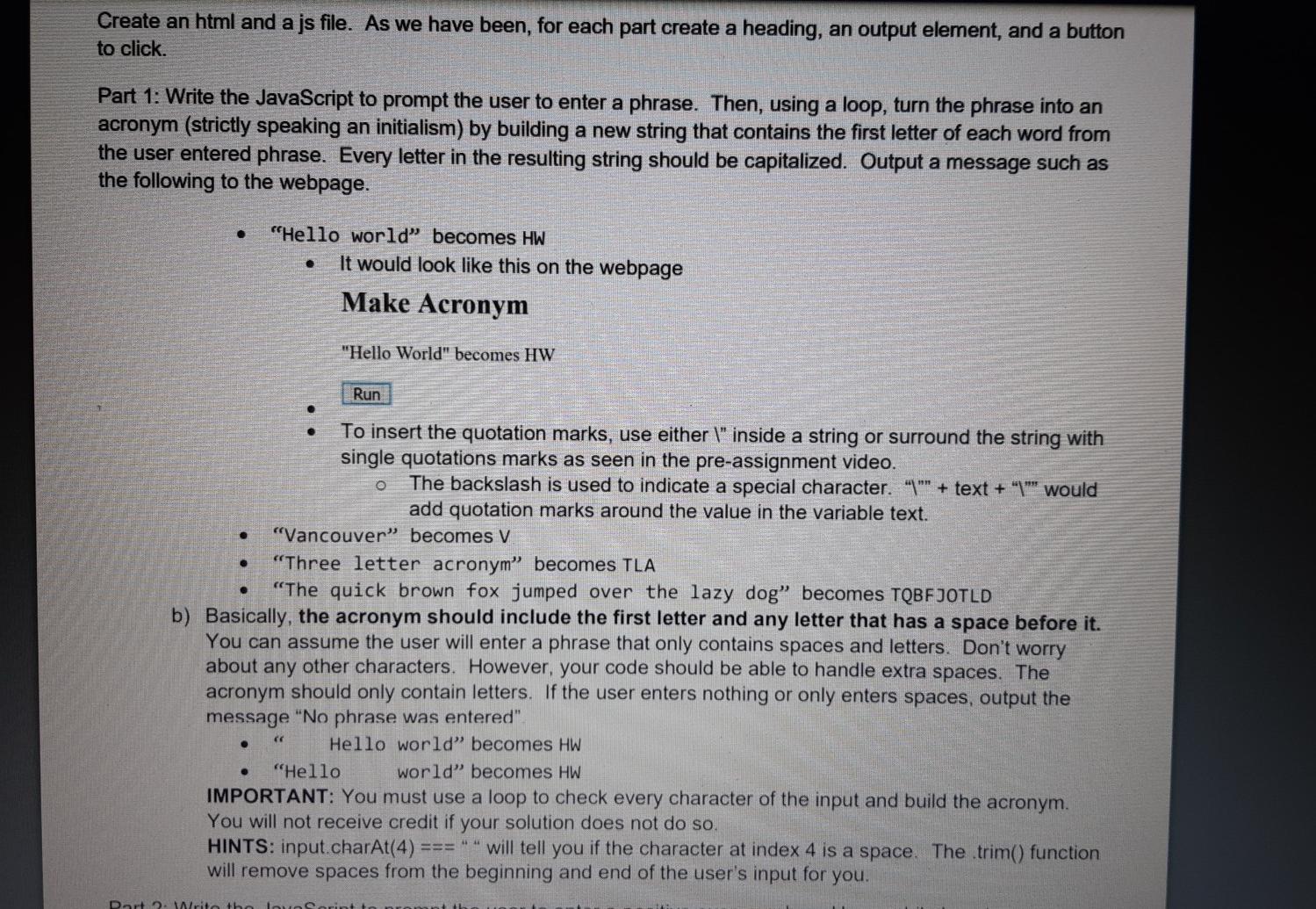 Javascript create html element from string. Definition and Usage. The charAt() method returns the character at a specified index in a string.. The index of the first character is 0, the second character is 1, and so on. The index of the last character in a string is string.length-1, the second last character is string.length-2, and so on (See "More Examples"). Javascript strip HTML from a string. If you are running in a browser, it is best to use DOMParser: function strip (html) { let doc = new DOMParser ().parseFromString (html, 'text/html'); return doc.body.textContent || ""; } If you are running in browser to test the inline JavaScript, use the following code: Template element. A built-in <template> element serves as a storage for HTML markup templates. The browser ignores it contents, only checks for syntax validity, but we can access and use it in JavaScript, to create other elements. In theory, we could create any invisible element somewhere in HTML for HTML markup storage purposes.
