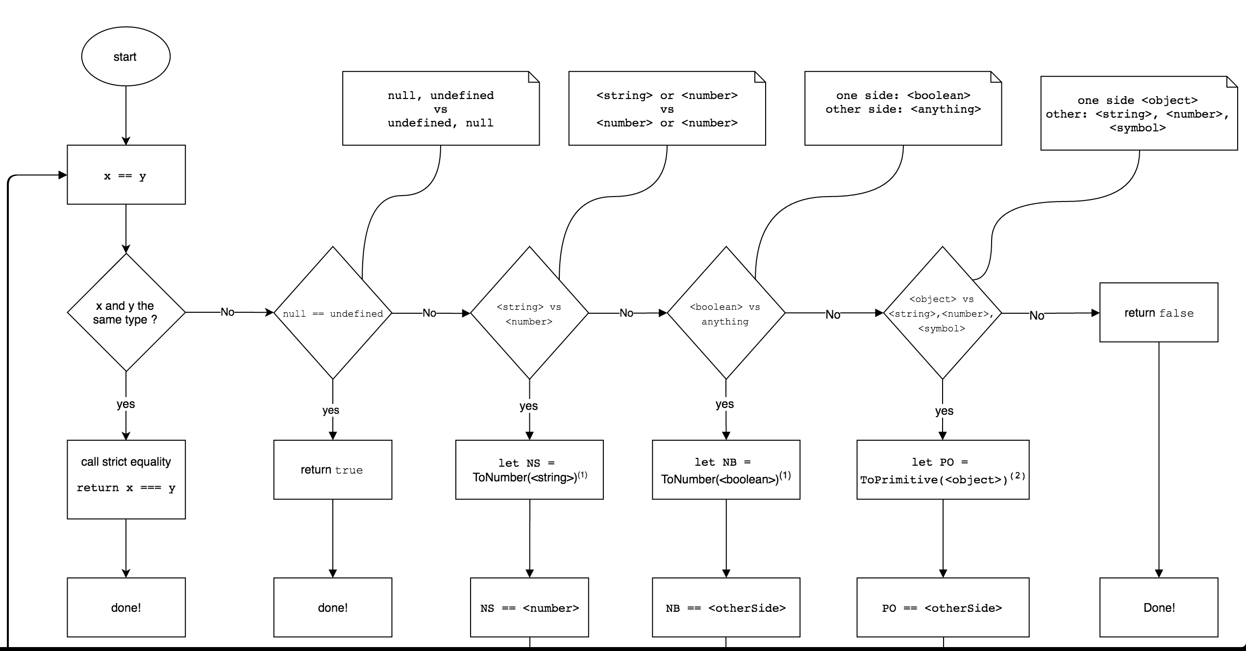 18/11/2017 · Awesome! Again, the key takeaway for triple (strict) equality is that both the type and the value we are comparing have to be the same. Double equals. When using double equals in JavaScript we are testing for loose equality. Double equals also performs type coercion. Sep 12, 2020 - In JavaScript, you can check the equality of any two objects using == or ===. Both the operators check whether the given two objects are equal or not, but in a whole different way. The equality… Sep 05, 2020 - If you have a JavaScript interview coming up soon, be prepared to answer one of the most frequently asked questions: “What is the difference between using “==” and “===” operator?”. Here is the…