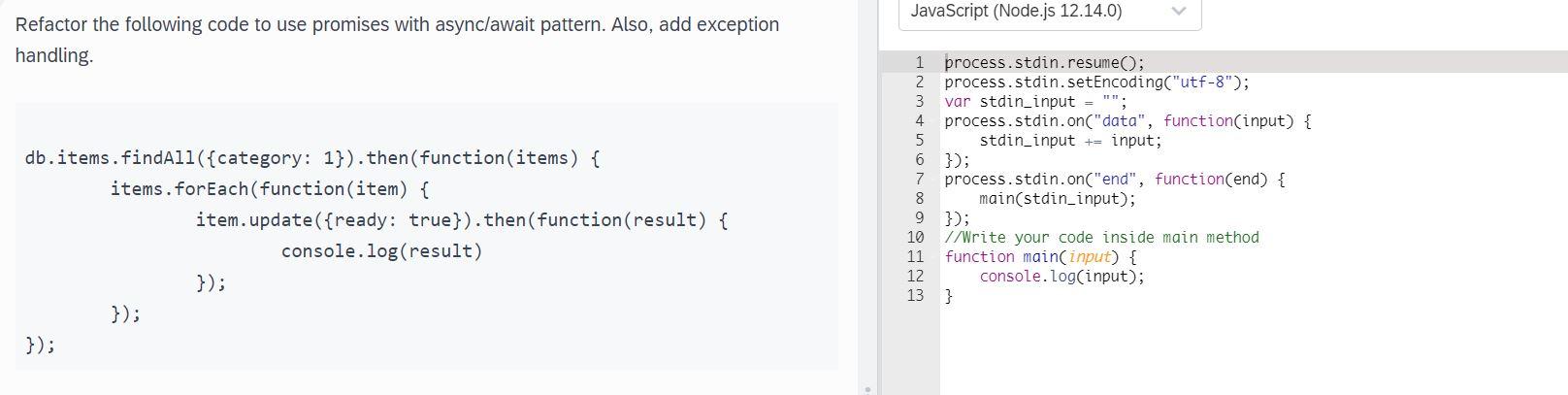 Javascript Node Js 12 14 0 Refactor The Following Chegg Com