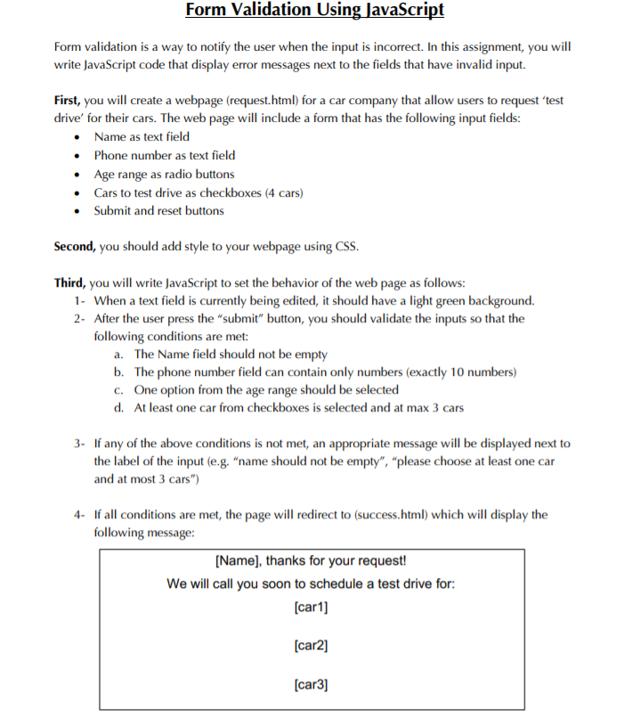 Form Validation Using Javascript Form Validation Is A Chegg Com